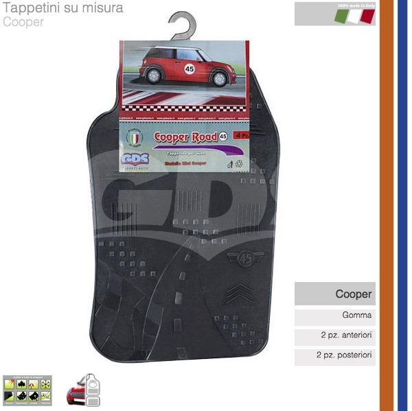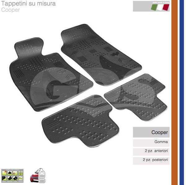 Tappeto per Cooper in gomma antiscivolo (2 pz. anteriori e 2 pz. posteriori)