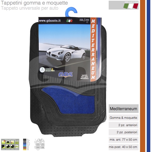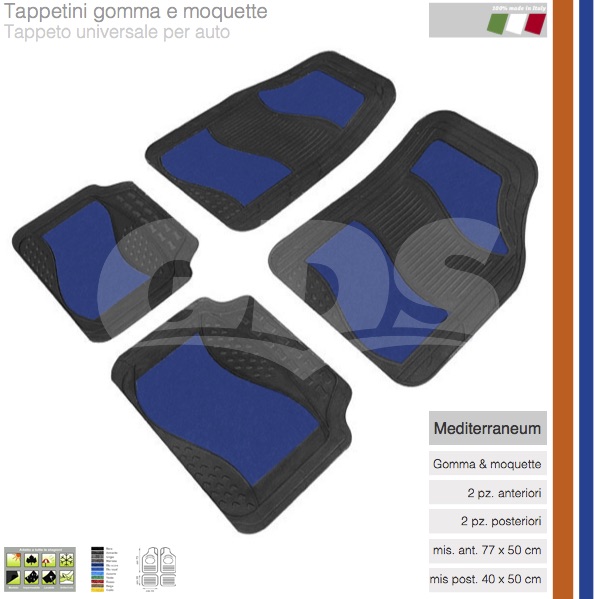 Tappeto universale per auto Mediterraneum in gomma antiscivolo e moquette (2 pz. anteriori e 2 pz. posteriori)
